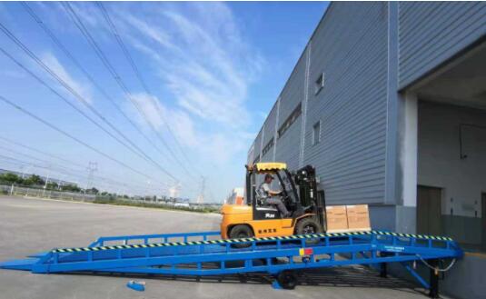 1.移动式液压登车桥,是一种装卸货物的辅助设备,它通过调节自身的高度来实现与卸货车之间的距离,是一种使用很方便的卸货平台。液压登车桥是与叉车配合使用的货物装卸辅助设备,根据汽车车厢的高低调节高度,叉车可以直接通过本设备驶入车厢内部进行货物的批量装卸,仅需单人作业,即可实现货物的快速装卸。