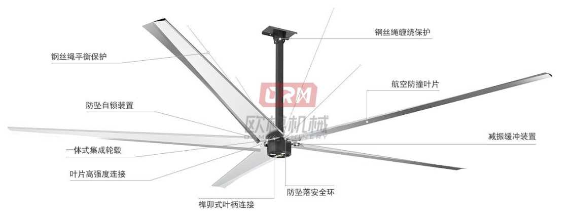 大直径,低转速、高能效新型节能大风扇,利用空气动力学原理,搭载近年来高新技术引领时尚潮流的永磁同步电机直驱,安全、可靠、耐用、整机1.5KW的模拟自然风系统,加速室内空间的空气流通,为全员营造舒适的环境,关爱人类健康,提升工作效率,轻松解决高大空间通风降温难题。
