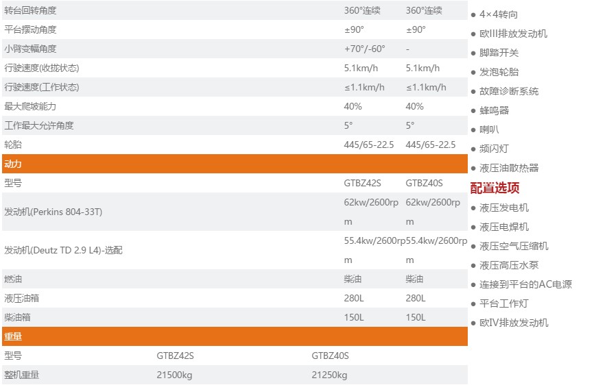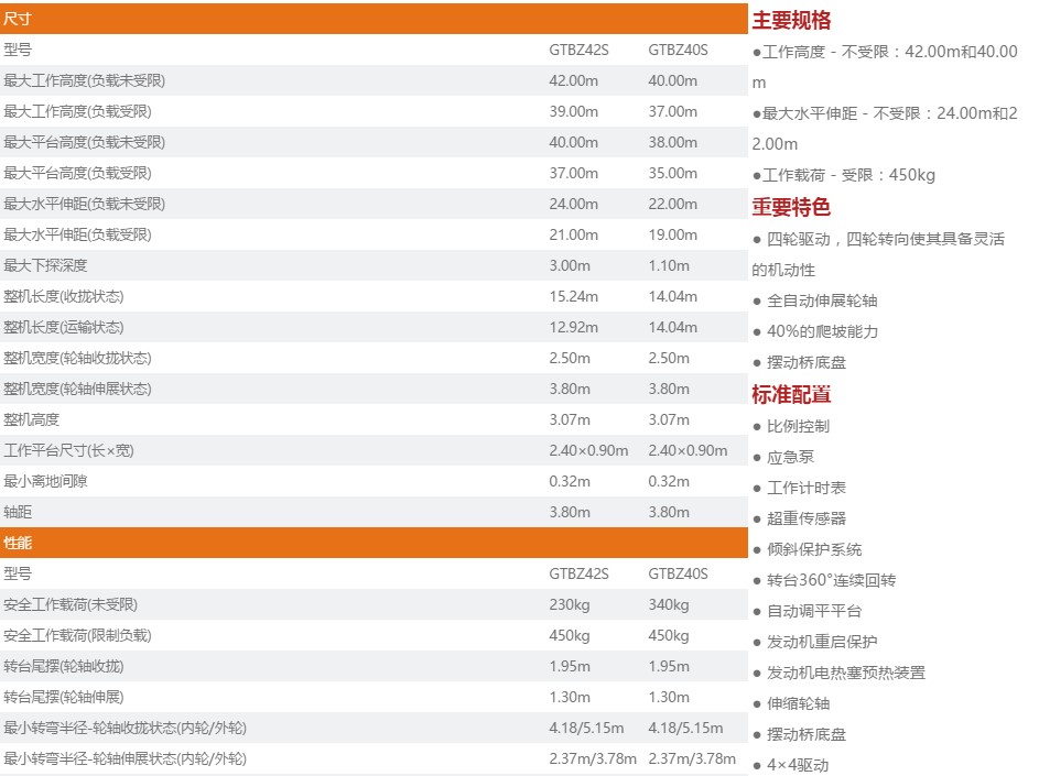 直臂式高空作业平台 GTBZ42S/GTBZ40S
