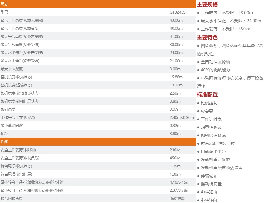 直臂式高空作业平台 GTBZ43S
