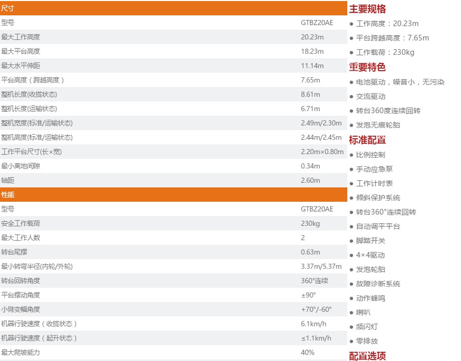 曲臂式高空作业平台 GTBZ20AE