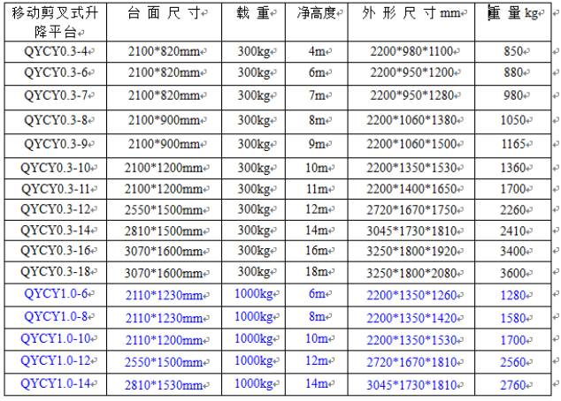 升降平台500公斤