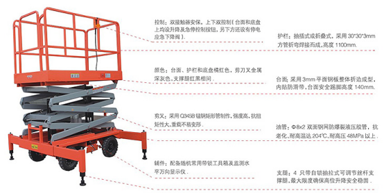 剪叉式高空作业平台是用途广泛的高空作业设备。 他的剪叉式机械结构,使升降机升起后去有稳定性,宽大的作业平台和较高的承载能力,使高空作业范围大,并适合多人同时作业,它使高空作业效率高,安全更有保障。适用于厂房、工地、宾馆、仓库、机场、车站、码头、体育场等高大建筑之高空设备安装、检修和清洁卫生,野外电力设施、高架管道、起吊机械维护保养等高空作业。
